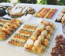 Suministramos bandejas de dulces y salados, todo artesanal, elaborado por nosotros mismos. Canapés, hojaldres, hamburguesitas, perritos, tortillas de patata, servimos arroces espectaculares y los cocinamos en su propio evento si usted quiere. Consúltenos todo lo que tenga en mente porque las combinaciones son infinitas.